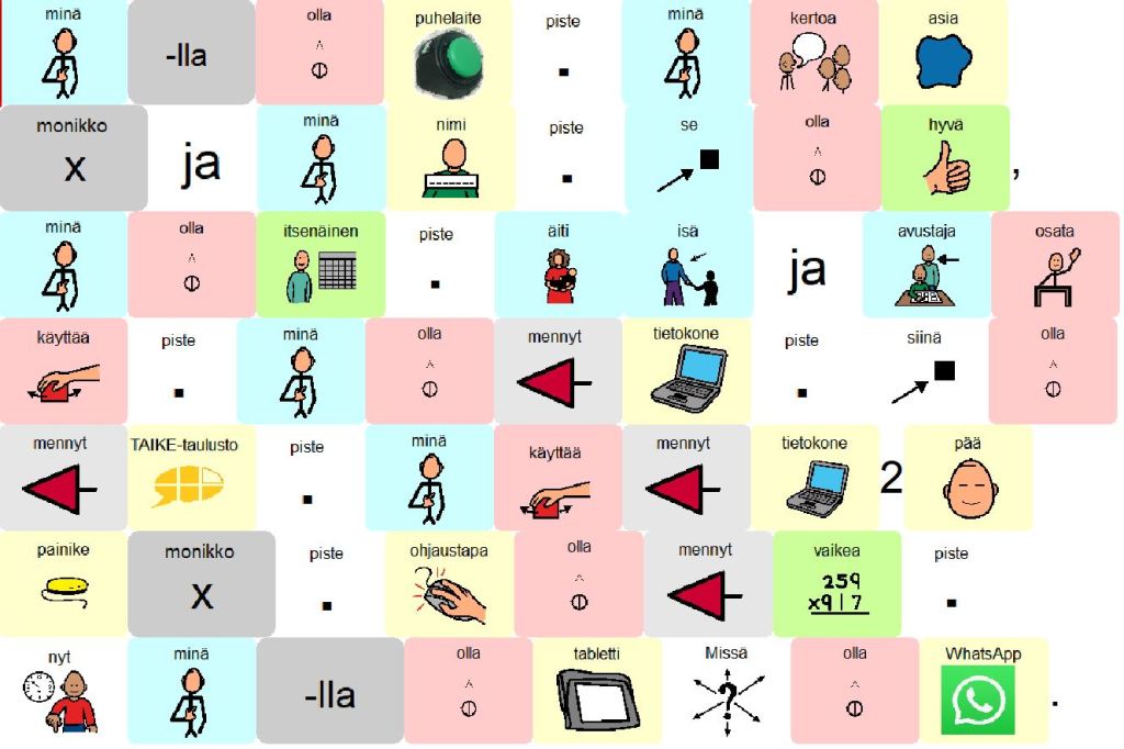 Minulla oli käytössä tietokone. Siinä oli TAIKE-taulusto. Minä käytin tietokonetta kahdella pääpainikkeella. Ohjaustapa oli liian vaikea.