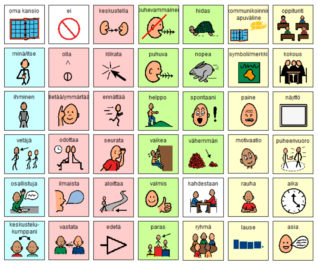 Spontaaneissa ryhmätilanteissa, joissa ei ole vetäjää, apuvälineen käyttäjän voi olla kuitenkin vaikea päästä keskusteluun mukaan, mikäli muut osallistujat eivät osaa odottaa ilmauksen rakentumista. Tällöin on tärkeää, että puhevammaisella ihmisellä on järjestelmässään merkkejä, joiden avulla hän voi esim. pyytää muita odottamaan tai sanoa, että asiani liittyy aiemmin käsiteltyyn teemaan. Puhevammaisen ihmisen kanssa työskentelevien ammattilaisten on tärkeä nostaa esiin näitä strategioita, joiden avulla ryhmätilanteisiin osallistuminen on mahdollista.